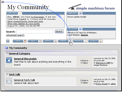 First make sure you are logged in as an admin user and click the Admin button