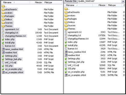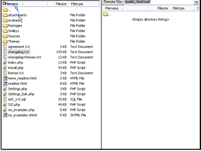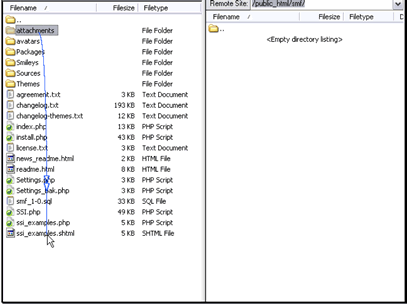 At this point we will assume that you have downloaded SMF, extracted it to your hard drive and connected to your site via FTP.