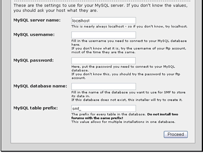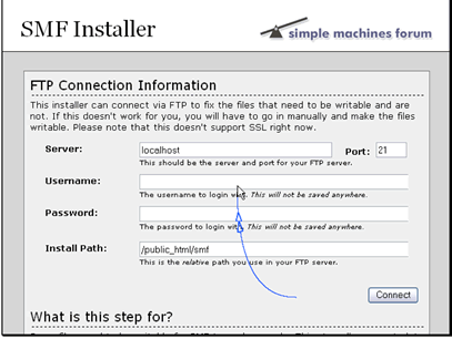 If you have files that do not have the correct permissions you can enter your FTP login details here and SMF will attempt to update the permissions for you. If you do not see this screen that is OK, it means your permissions are fine.